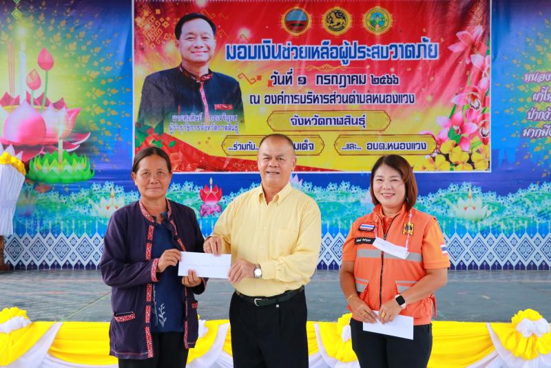 วันที่ ๑ กรกฎาคม ๒๕๖๖ ที่ผ่านมา จังหวัดกาฬสินธุ์ ร่วมกับอำเภอสมเด็จ และองค์การบริหารส่วนตำบลหนองแวง มอบเงินช่วยเหลือผู้ประสบวาตภัย (เหตุเกิดวันที่ ๑๕ เมษายน ๒๕๖๖) นายศุภศิษย์ กอเจริญยศ ผู้ว่าราชการจังหวัดกาฬสินธุ์ มอบหมายให้อำเภอสมเด็จ เป็นตัวแทนในการมอบเงินช่วยเหลือผู้ประสบวาตภัย (เหตุเกิดวันที่ ๑๕ เมษายน ๒๕๖๖) พื้นที่ตำบลหนองแวง ได้รับการช่วยเหลือทั้งสิ้น ๒๒๙ ครัวเรือน ณ อาคารอเนกประสงค์องค์การบริหารส่วนตำบลหนองแวง อำเภอสมเด็จ จังหวัดกาฬสินธุ์