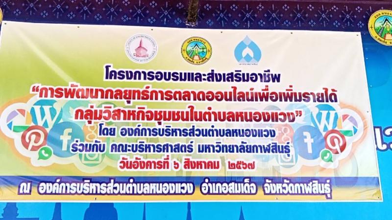 โครงการอบรมและส่งเสริมอาชีพ หลักสูตร "การพัฒนากลยุทธ์การตลาดออนไลน์เพื่อเพิ่มรายได้ กลุ่มวิสาหกิจชุมชนในตำบลหนองแวง" ณ ห้องประชุมสภาองค์การบริหารส่วนตำบลหนองแวง อำเภอสมเด็จ จังหวัดกาฬสินธุ์
