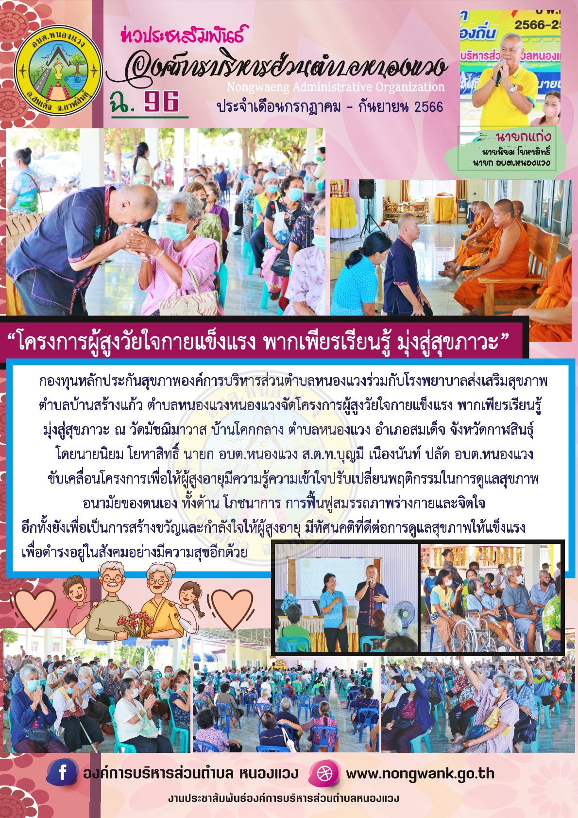 จัดโครงการผู้สูงวัยใจกายแข็งแรง พากเพียรเรียนรู้ มุ่งสู่สุขภาวะ ณ วัดมัชฌิมาวาส บ้านโคกกลาง ตำบลหนองแวง อำเภอสมเด็จ จังหวัดกาฬสินธุ์