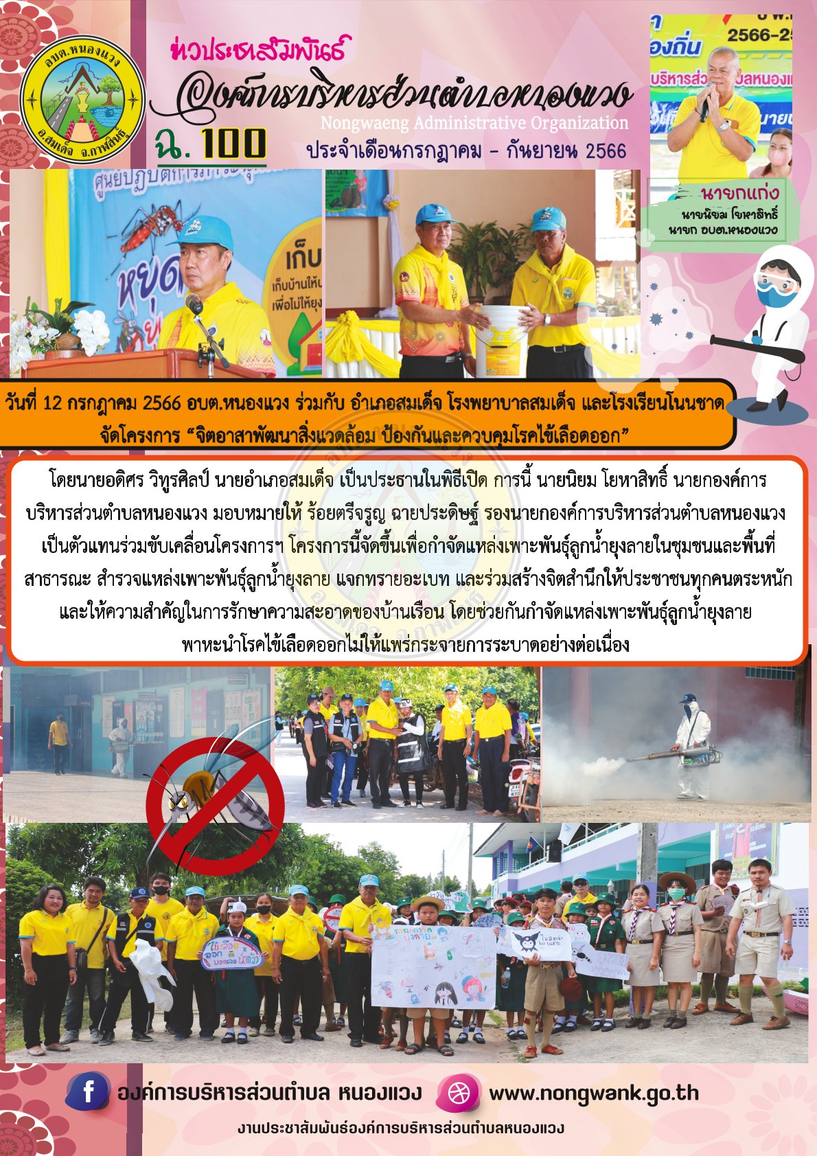 อบต.หนองแวง ร่วมกับ อำเภอสมเด็จ โรงพยาบาลสมเด็จ และโรงเรียนโนนชาด จัดโครงการ “จิตอาสาพัฒนาสิ่งแวดล้อม ป้องกันและควบคุมโรคไข้เลือดออก” ณ โรงเรียนบ้านโนนชาด