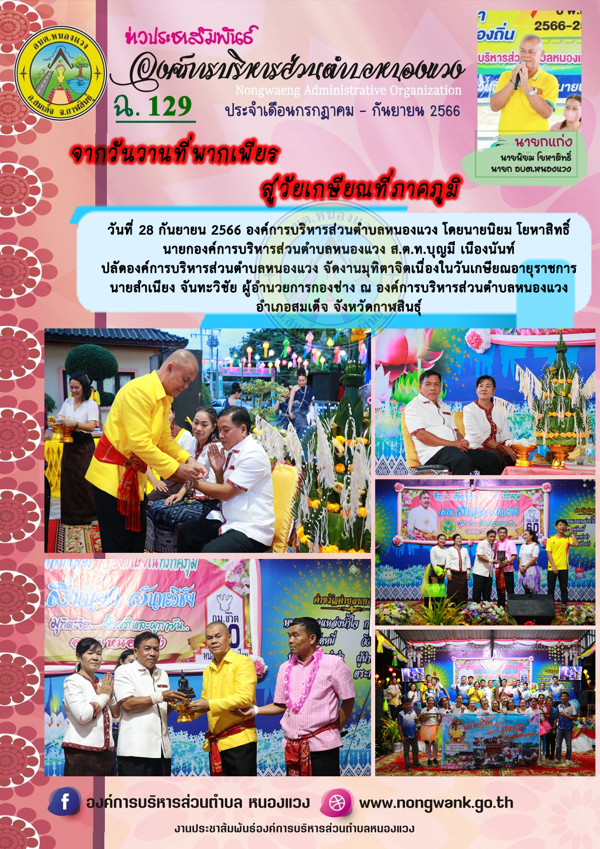 วันที่ 28 กันยายน 2566 ที่ผ่านมา องค์การบริหารส่วนตำบลหนองแวง โดยนายนิยม โยหาสิทธิ์ นายกองค์การบริหารส่วนตำบลหนองแวง ส.ต.ท.บุญมี เนืองนันท์ ปลัดองค์การบริหารส่วนตำบลหนองแวง จัดงานมุทิตาจิตเนื่องในวันเกษียณอายุราชการ นายสำเนียง จันทะวิชัย ผู้อำนวยการกองช่าง ณ องค์การบริหารส่วนตำบลหนองแวง อำเภอสมเด็จ จังหวัดกาฬสินธุ์