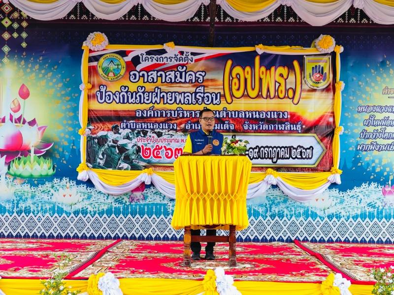 เมื่อวันที่ 15 กรกฎาคม 2567 องค์การบริหารส่วนตำบลหนองแวง จัดโครงการจัดตั้งอาสาสมัครป้องกันภัยฝ่ายพลเรือน (อปพร.) ประจำปีงบประมาณ พ.ศ. 2567 ได้รับเกียรติจาก นายวิชาญ อิทธิฤกษ์มงคล นายอำเภอสมเด็จ เป็นประธานในพิธีเปิด นายนิยม โยหาสิทธิ์ ผู้อำนวยการศูนย์ อปพร. องค์การบริหารส่วนตำบลหนองแวง ส.ต.ท.บุญมี เนืองนันท์ ปลัดองค์การบริหารส่วนตำบลหนองแวง พร้อมด้วยสมาชิกอาสาสมัครป้องกันภัยฝ่ายพลเรือนเข้าร่วมโครงการ เพื่อให้ อปพร. เข้าใจบทบาท ภารกิจหน้าที่ และสิทธิตามกฎหมาย ของตนเองอย่างถูกต้อง ณ องค์การบริหารส่วนตำบลหนองแวง อำเภอสมเด็จ จังหวัดกาฬสินธุ์
