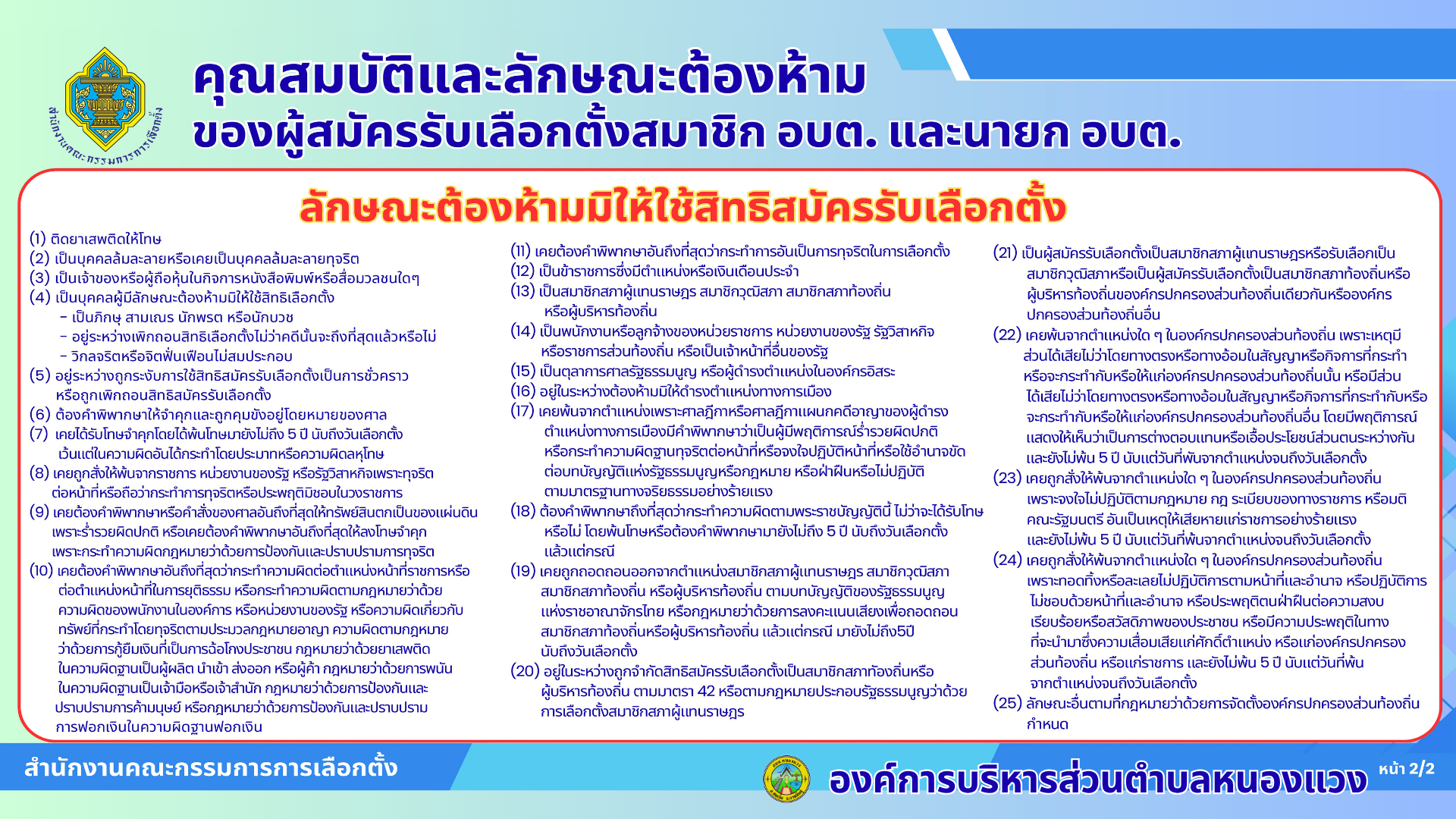 คุณสมบัติและลักษณะต้องห้ามของผู้สมัครรับเลือกตั้งสมาชิก อบต. และนายก อบต.