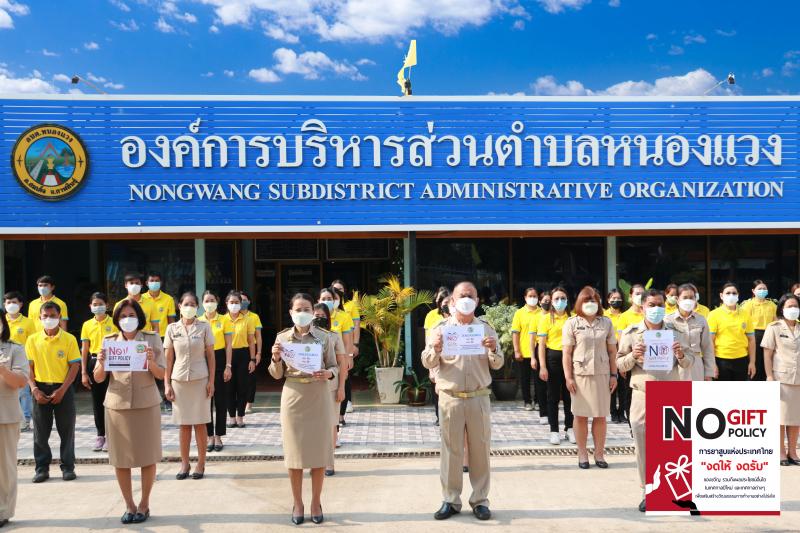 description เมื่อวันที่ 14 มีนาคม พ.ศ. 2565 นายนิยม โยหาสิทธิ์ นายกองค์การบริหารส่วนตำบลหนองแวง พร้อมด้วยคณะผู้บริหาร ข้าราชการ พนักงานอบต.หนองแวง เข้าร่วมโครงการกิจกรรมแสดงเจตจำนงการป้องกัน และต่อต้านการทุจริตคอร์รัปชั่นเพื่อการบริหารงานอย่างซื่อสัตย์สุจริตโปร่งใส โดยการประกาศเจตนารมณ์ต่อต้านการทุจริตคอร์รัปชั่น เพื่อเป็นการสนองนโยบายของรัฐบาล ในการป้องกันและปราบปรามการทุจริตและการสร้างระบบราชการที่ใสสะอาด ต่อต้านการทุจริตทุกรูปแบบ และเพื่อเป็นการเสริมสร้างวัฒนธรรมและค่านิยมสุจริต ให้กับคณะผู้บริหาร สมาชิกสภา ข้าราชการและเจ้าหน้าที่องค์การบริหารส่วนตำบลหนองแวง ในการปฏิบัติงานให้มีคุณธรรม จริยธรรม ความโปร่งใสมากยิ่งขึ้น ลดการทุจริตคอร์รัปชัน และปลูกฝังจิตสำนึกให้เป็นคนดี มีค่านิยมในทางสุจริต และมีจิตบริการ จึงจัดให้มีกิจกรรมการแสดงออกเชิงสัญญลักษณ์ “No Gift Policy งดรับ งดให้ ของขวัญ ในทุกเทศกาล” เพื่อรณรงค์ให้ คณะผู้บริหาร สมาชิกสภา ข้าราชการและเจ้าหน้าที่องค์การบริหารส่วนตำบล ทุกระดับ งดรับของขวัญจากบุคคลภายนอกผู้มาติดต่อกับองค์การบริหารส่วนตำบลหนองแวง และงดให้ของขวัญแก่บุคคลภายนอกผู้มาติดต่อกับองค์การบริหารส่วนตำบลหนองแวง ในทุกช่วงเทศกาล เพื่อหลีกเลี่ยงการกระทำอันอาจมีผลต่อดุลพินิจ หรือการตัดสินใจในการปฏิบัติหน้าที่ซึ่งนำไปสู่ การเลือกปฏิบัติ หรือก่อให้เกิดผลประโยชน์ทับซ้อน ณ ลานอเนกประสงค์องค์การบริหารส่วนตำบลหนองแวง person admin