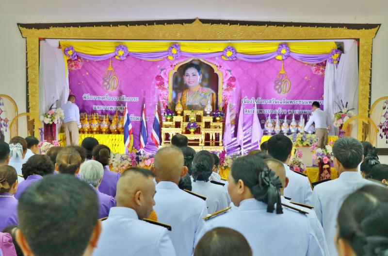 พิธีถวายเครื่องราชสักการะและจุดเทียนถวายพระพรชัยมงคล สมเด็จพระนางเจ้าสุทิดา พัชรสุธาพิมลลักษณ พระบรมราชินี เนื่องในโอกาสวันเฉลิมพระชนมพรรษา (3 มิถุนายน 2567) ณ หอประชุมอำเภอสมเด็จ จังหวัดกาฬสินธุ์