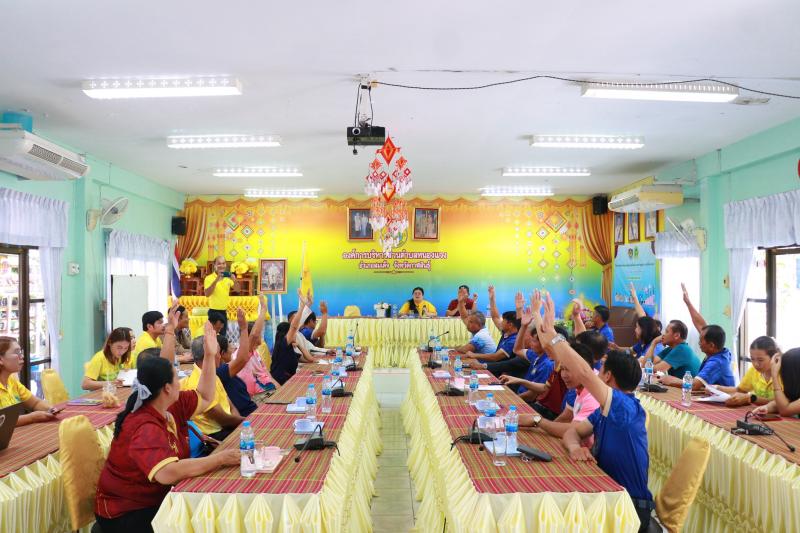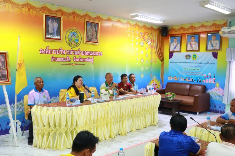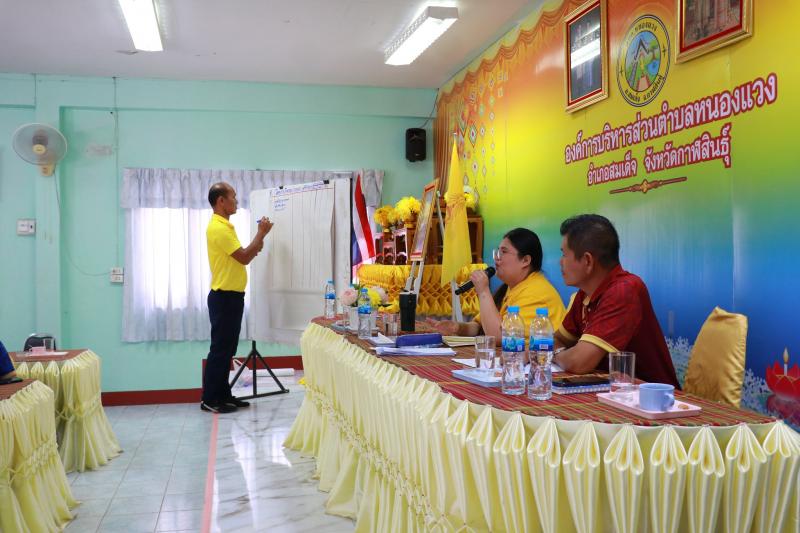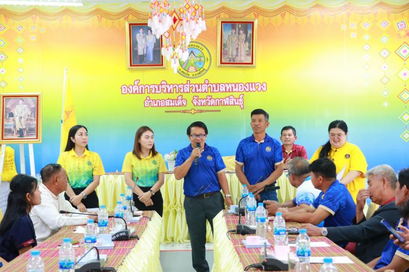 วันที่ 22 พฤษภาคม 2568 องค์การบริหารส่วนตำบลหนองแวงร่วมกับสำนักงานพัฒนาชุมชนอำเภอสมเด็จ นำโดย นายนิยม โยหาสิทธิ์ นายกองค์การบริหารส่วนตำบลหนองแวง ส.ต.ท.บุญมี เนืองนันท์ ปลัดองค์การบริหารส่วนตำบลหนองแวง นางสาวรัญชนา เครือเทียน นักวิชาการพัฒนาชุมชนปฏิบัติการ รับผิดชอบ ตำบลหนองแวง พร้อมด้วยผู้นำชุมชน ดำเนินโครงการจัดเวทีแลกเปลี่ยนบทเรียนความสำเร็จผู้นำการเปลี่ยนแปลง (ระดับอำเภอ) เพื่อแสดงผลสำเร็จการส่งเสริมการใช้ประโยชน์และขยายผลแผนพัฒนาตำบลสู่ตำบลเข้มแข็งตามหลักปรัชญาของเศรษฐกิจพอเพียง สู่ความยั่งยืน โดยกลุ่มเป้าหมายประกอบด้วย ครู ข ขยายผล จำนวน 18 คน ณ ห้องประชุมสภาองค์การบริหารส่วนตำบลหนองแวง อำเภอสมเด็จ