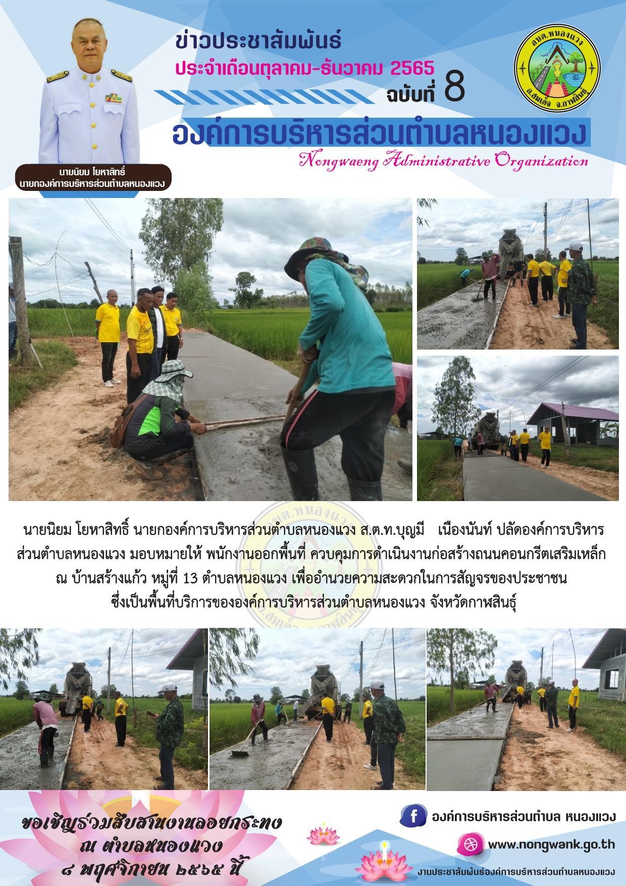ก่อสร้างถนน คสล. บ้านสร้างแก้ว หมู่ 13 ต.หนองแวง